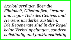 Ich werde übrigens niemlas erwachsen. Ich bleibe wie meine Artgenossen immer im Stadium einer Larve.